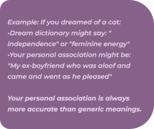 Think about it. You dreamed about a dog. The dream dictionary says it means “loyalty.” But what if you were bitten by a dog as a child? What if your ex-boyfriend had a dog you hated? What if you’re a mail carrier who gets chased by dogs daily? Suddenly “loyalty” makes no sense at all.
