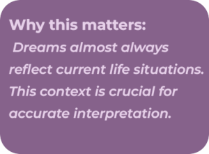 - Don’t skip the life context – Dreams oftrn relate to current situations